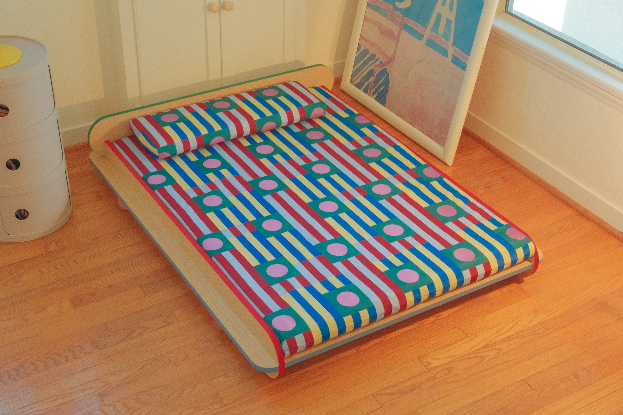 Modern pet bed with vibrant colors and contemporary patterns, perfect for stylish interiors and design-conscious pet owners.